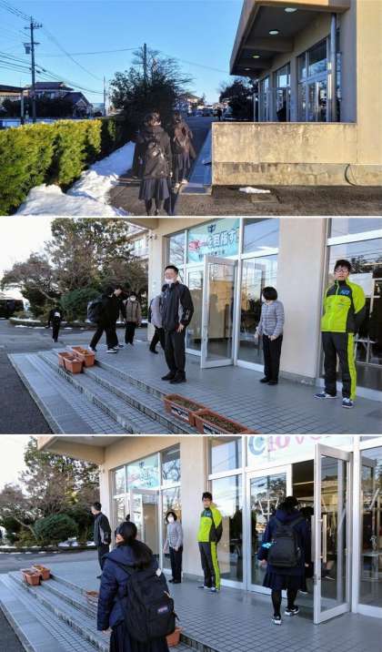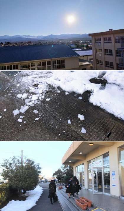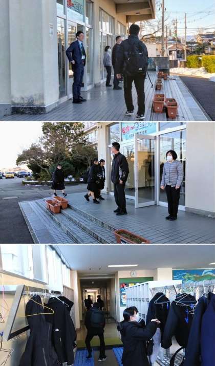 1月30日(火)朝の登校風景 公開日 2024/02/01 更新日 2024/02/01 その他 「おはようございます!」青空の広がる晴れた朝を迎えました。 冷え込みが強く、路面には所々凍結した部分がありましたが、生徒たちはスリップに気を付けながら安全に登校してきました。 今日も、生徒玄関前では生徒たちの元気な朝の挨拶の声が響いています。
