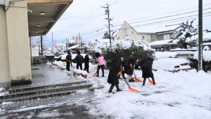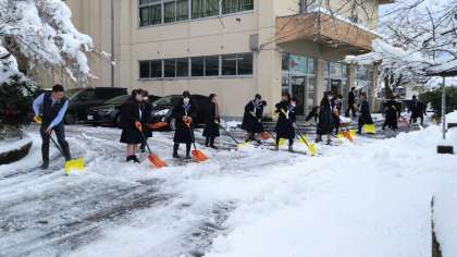 2月6日(火)朝の除雪活動(その1) 公開日 2024/02/06 更新日 2024/02/06 生徒の活動紹介 昨日午後から降った雪で今朝は積雪があり、除雪当番である1年1組の生徒たちが早めに登校して、用務員さんや教職員と共に一生懸命に除雪作業に取り組みました。