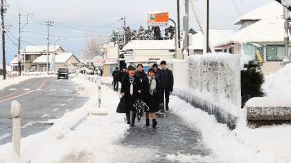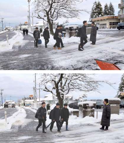2月6日(火)朝の登校風景(その2) 公開日 2024/02/06 更新日 2024/02/06 その他 時折、重たい雪に足をとられそうになっていましたが、今日も生徒たちは事故等なく安全に登校してきました。