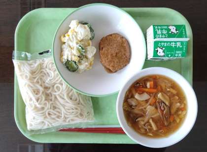 2月6日(火)本日の給食 公開日 2024/02/06 更新日 2024/02/06 その他 本日の給食メニューは・・・、 ソフト麺 牛乳 ソフト麺の五目あん 鶏つくね ポテトサラダ でした。 給食メニューの定番「ソフト麺」。五目あんをからめたソフト麺と「鶏つくね」「ポテトサラダ」がベストマッチでした。 今日もおいしい給食を楽しくいただきました。ありがとうございました!