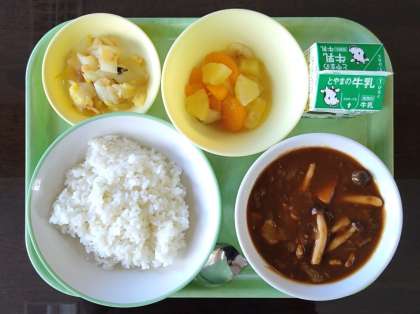 2月7日(水)本日の給食 公開日 2024/02/08 更新日 2024/02/08 その他 本日の給食メニューは・・・、 ごはん 牛乳 たべキリンハヤシ 福神和え フルーツミックス でした。 「たべキリンハヤシ」「フルーツミックス」・・・、子供たちの大好きな献立でした。 今日もおいしい給食を楽しくいただきました。ありがとうございました!