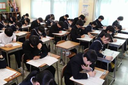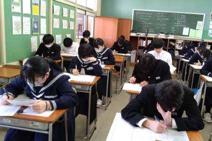 2月14日(水)・15日(木)の2日間、学年末考査が実施されています。3年生にとっては中学校3年間での最後の定期考査となりましたが、入試本番さながらに、時間いっぱい全力で問題に取り組んでいました。