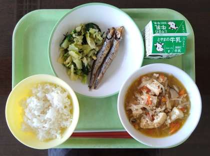 2月15日(木)本日の給食 公開日 2024/02/16 更新日 2024/02/16 その他 本日の給食メニューは・・・、 ごはん 牛乳 ししゃものから揚げ 昆布和え 厚揚げの中華煮込み でした。 「厚揚げの中華煮込み」は、野菜と厚揚げとお肉の入った、具だくさんな中華風の煮込み料理です。少し濃いめの味付けでごはんにとてもよく合う一品でした。 今日もおいしい給食を楽しくいただきました。ありがとうございました!