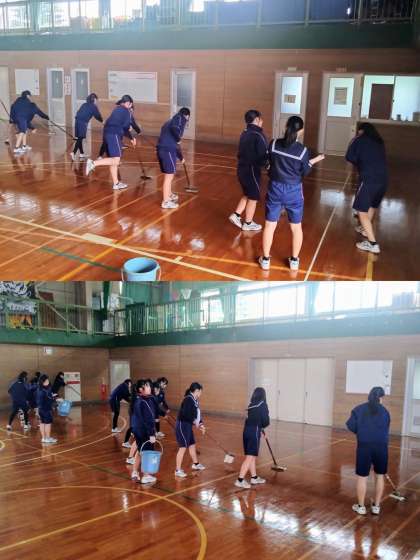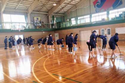 2月22日(木)体育館のワックス塗装(その2) 公開日 2024/02/26 更新日 2024/02/26 生徒の活動紹介 事前打合せを行い、いよいよワックス塗装が始まりました。来週月曜日はピカピカの体育館で授業や部活動に思いっきり取り組むことができます。本当に楽しみです!