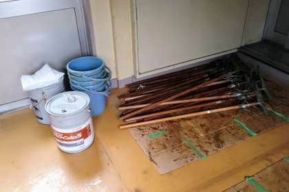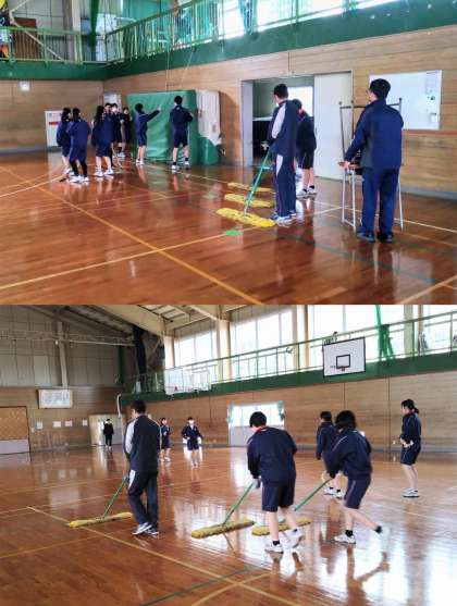 2月22日(木)体育館のワックス塗装(その1) 公開日 2024/02/26 更新日 2024/02/26 生徒の活動紹介 本日放課後に体育館のワックス塗装を行いました。用務員さんや教職員のアドバイスを受けながら、部活動で体育館を利用する生徒の皆さんがボランティアで作業に取り組みました。ありがとうございました!