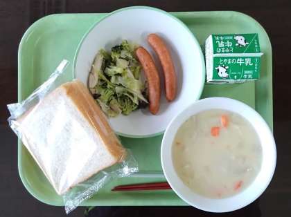 2月26日(月)本日の給食 公開日 2024/02/26 更新日 2024/02/26 その他 本日の給食メニューは・・・、 食パン 牛乳 あらびきウインナー ブロッコリーときのこのアヒージョ 米粉シチュー でした。 食パンを少しちぎって「米粉シチュー」につけて食べてみると・・・、 何と、相性バッチリでした。 今日もおいしい給食を楽しくいただきました。ありがとうございました!