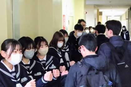 今日も生徒会執行部と担当部活動の皆さんが笑顔と元気な挨拶、グータッチやハイタッチ、エアータッチで全校生徒を迎えてくれました。