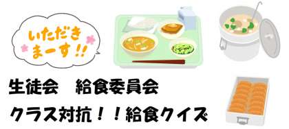 生徒会の給食委員会の企画活動「クラス対抗!!給食クイズ」。お昼の校内放送「It's lunch time」の中でクイズを出題し、クラス対抗で問題を解いてもらいながら、給食時間を楽しく過ごしてもらっています。これまでに出題された問題の答えと本日の問題を紹介します。