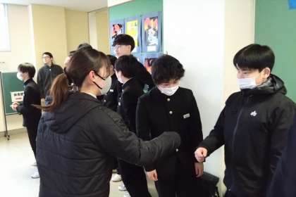 生徒会執行部が企画する「月中 Smile 挨拶運動」も最終日となり、今朝は野球部、剣道部、無所属の生徒の皆さんが担当しました。