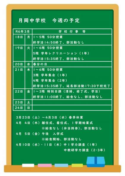 修了式が行われる3月22日(金)、この日が今年度のよい締め括りの日となるとともに、次への新たなスタートの日となるよう期待しています。