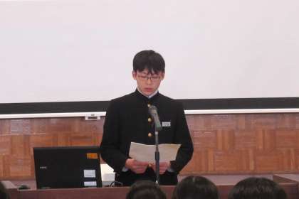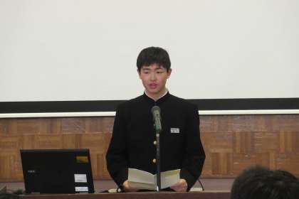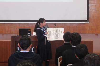 修了式に先立ち、受賞報告会と意見発表を行いました。