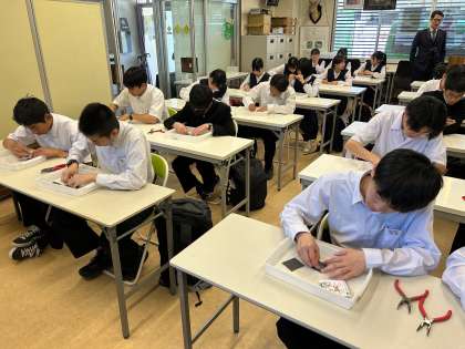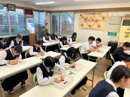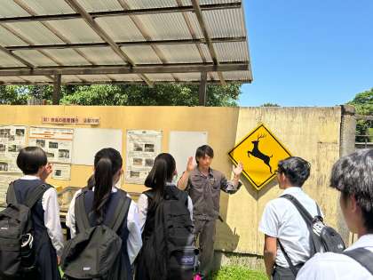 奈良公園内にある「奈良の鹿愛護会」で、鹿に関する情報や仕事内容を聞いた後、角細工の体験に取りかかりました。