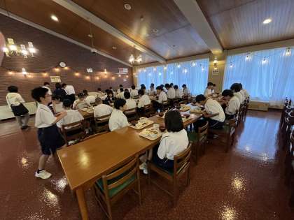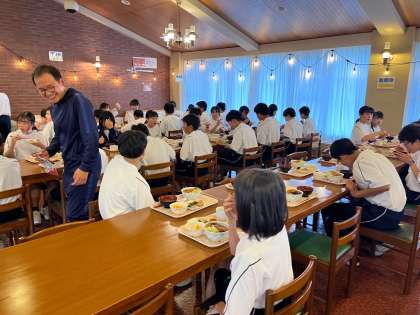 砺波青少年自然の家での夕食です。 今日は味噌カツ丼。おいしくいただきました。