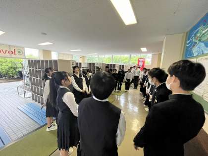 5月28日(火) 月中smile挨拶運動2日目 公開日 2024/05/28 更新日 2024/05/28 学び合い認め合う学習 月中smile挨拶運動2日目です。 ハイタッチやグータッチをしながら、さわやかに挨拶を交わします。 挨拶で元気に1日のスタートが切れますね! 今日もたくさんの生徒が挨拶運動に参加しました。