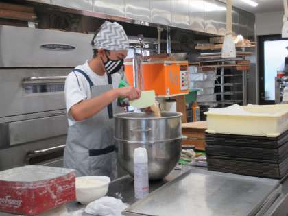 7月4日 2学年「社会に学ぶ『14歳の挑戦』」3日目 公開日 2024/07/04 更新日 2024/07/04 学び合い認め合う学習 菓子処榎屋での活動です。 今日はかりんとうまんじゅう作りを行いました。 事業所の方から「月岡中学校の生徒たちは素敵ですね。とても助かっています。」というお言葉を頂きました。普段のみんなの素敵な姿が地域の方々にも伝わり、とても誇らしい気持ちになりました!