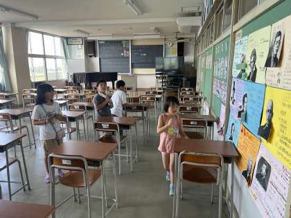 中学校に来て、インタビューしたり、教室を見学したりしました。
