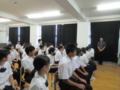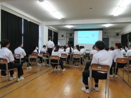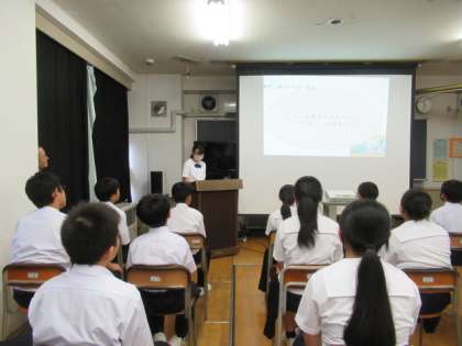 7月10日(水) 1年生校外学習まとめ発表会 公開日 2024/07/11 更新日 2024/07/11 学び合い認め合う学習 4限目、高岡・砺波校外学習についての課題について、まとめたことを学年で発表しました。自分の学んだことを友達に伝わるよう、わかりやすいスライドにし、発表の仕方もとても工夫されていました。聞いている人も、とても上手に発表を聞いたり、クイズに参加したりしていました。