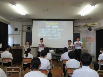 1限目に1学年集会がありました。学級の振り返りを発表し、先生からの夏休みに向けて話を聞きました。