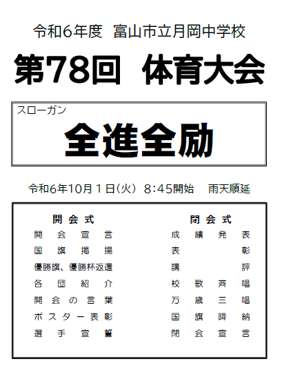 いよいよ明日10月1日(火)は第78回体育大会です。