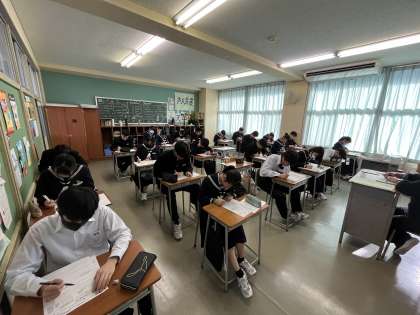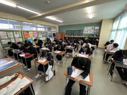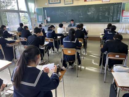 12月2日(月)今日の授業 公開日 2024/12/02 更新日 2024/12/02 学び合い認め合う学習 もう12月ですね。 期末考査も終わり、今日はテスト返しをして復習をしている教科もあります。 3年生は今週の確認テストに向けて勉強をしています。 すばらしい集中力です! 写真上、中:3年生テストに向けて 写真下:理科