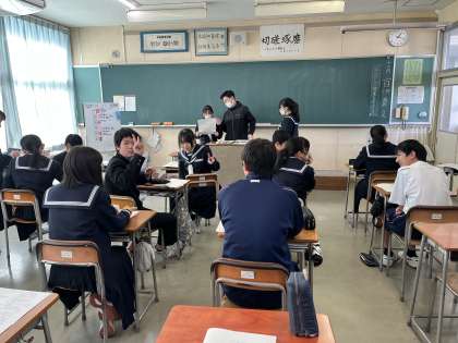2年生は友達や先生とテスト内容の確認をしています。