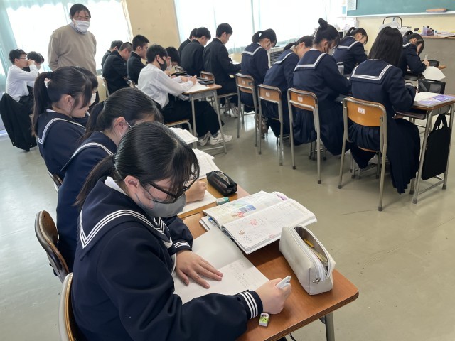 1月20日(月) 今日の授業 公開日 2025/01/20 更新日 2025/01/20 学び合い認め合う学習 3年生は受検間近!!今日も集中して授業に取り組んでいます。写真1枚目:数学2枚目:理科3枚目:保健体育4枚目:英語 +1