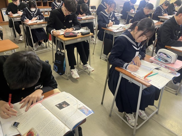 2月4日(火) 今日の授業 公開日 2025/02/04 更新日 2025/02/04 学び合い認め合う学習 雪が降り続いていますが、月中生は今日も集中して授業に取り組んでいます。理科は電流の学習です。家庭科では、調理実習に向けて調理の仕方を確認しています。楽しみですね!写真は左から理科、家庭科、社会、数学、英語、国語、国語です。 +4