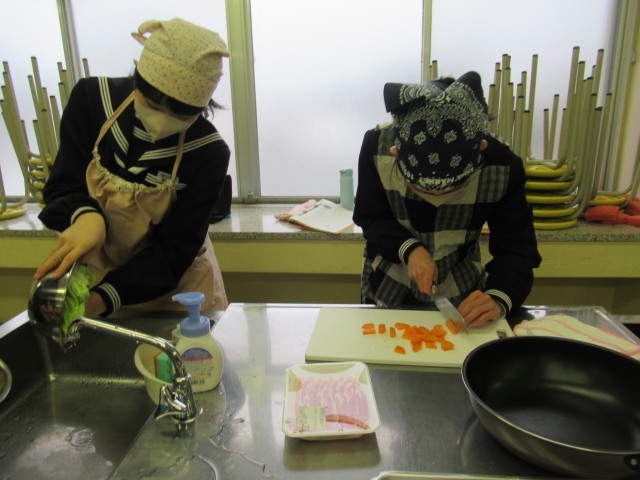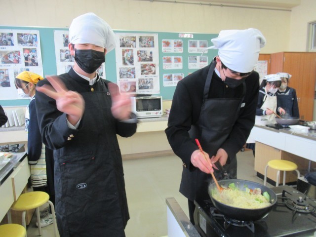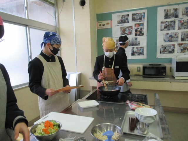 本日1限に家庭科の調理実習でやきそばを作りました。どの班もみんなで協力して手際よく美味しいやきそばを作っていました!