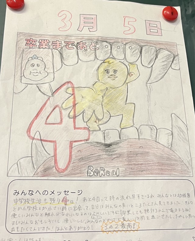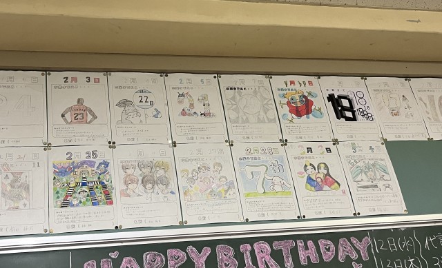 教室にはすてきなカウントダウンカレンダーが掲示されています。