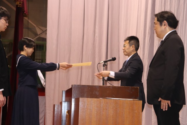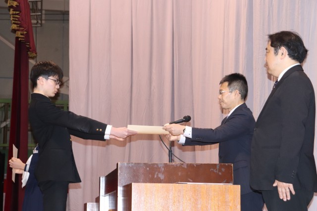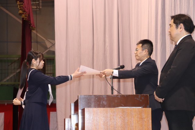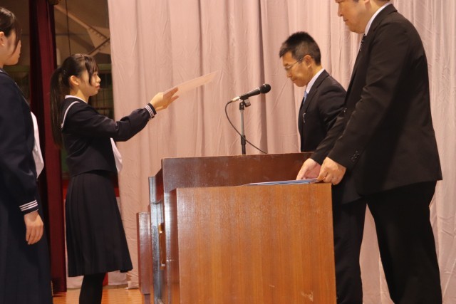 卒業式予行の前に、受賞伝達、修了証授与を行いました。