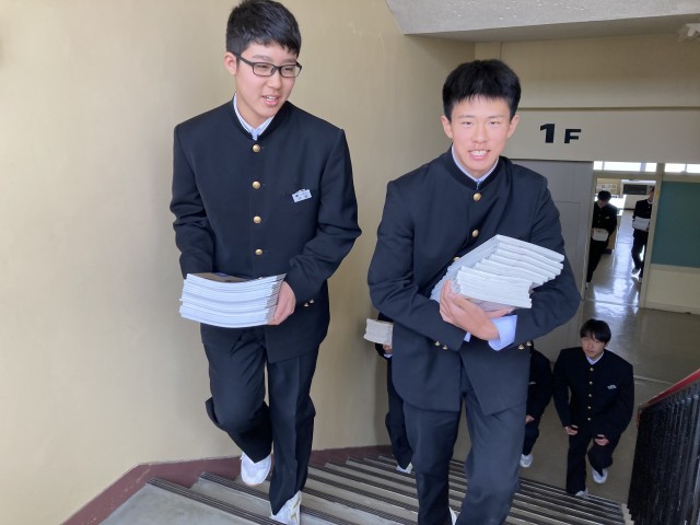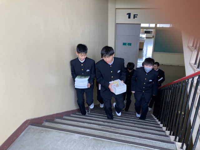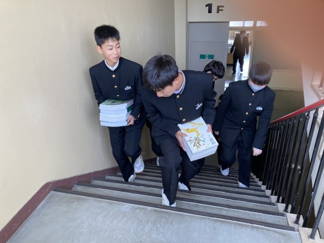 新しい教科書を運んでくれました。ありがとうございます。みんなの笑顔が素敵です。