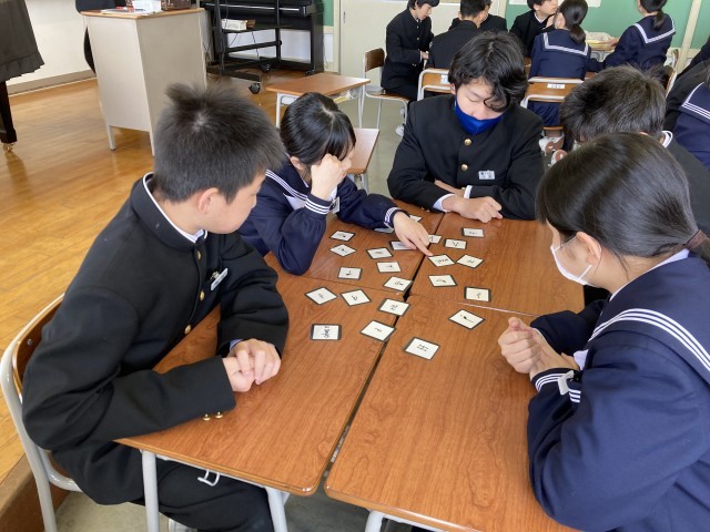 音楽の授業の様子です。グループで、「フェルマータって、どんな意味だっけ?」とか言いながら、音楽記号の意味を確かめていました。仲よく楽しく活動していて、よい雰囲気です。