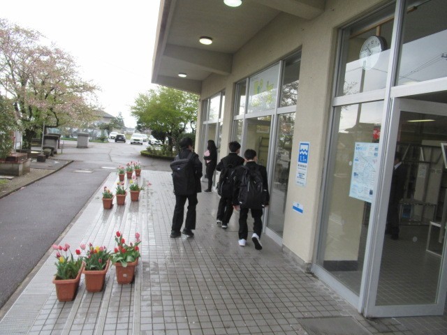 寒い朝です。冷たい雨も降ってきましたが、生徒たちは元気よく登校してきました。