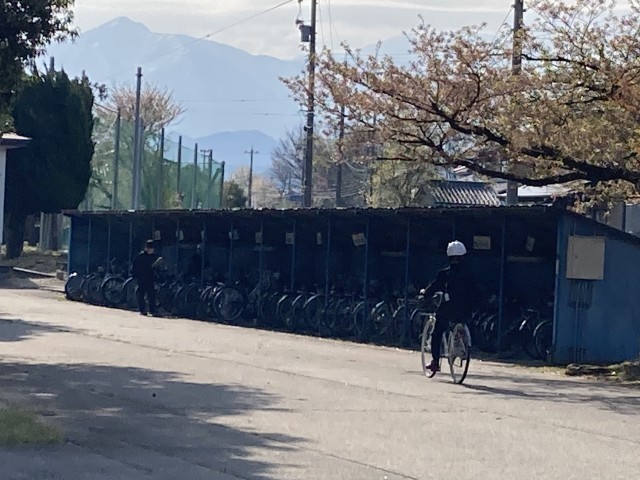 青空で気持ちのよい朝になりました。今日も自転車がきちんと整頓して並んでいる自転車小屋です。素晴らしいです。