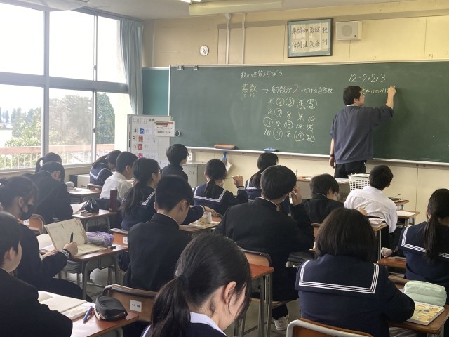 数学の授業の様子です。中学校では、ノートづくりが大切です。分かりやすくまとめると、復習するときに役立つはずです。