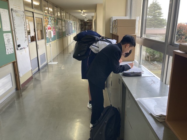 職員室前で、テキスト学習をしている生徒たちに遭遇しました。頑張って、仕上げてくださいね!