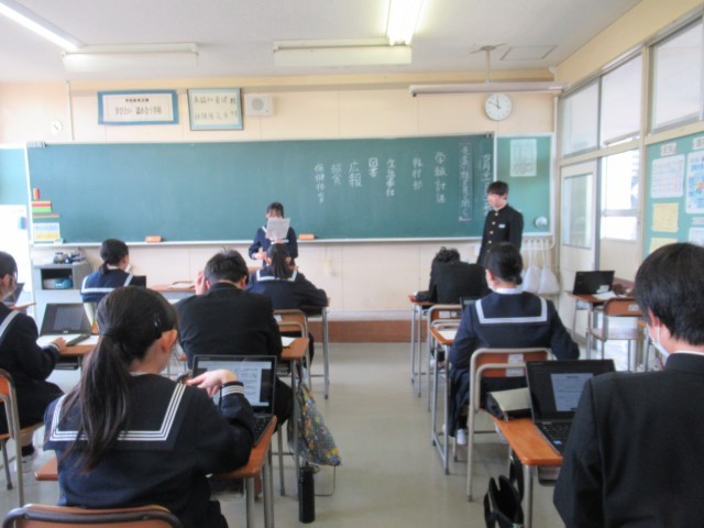 生徒総会に向けての学級討議の様子です。先週の金曜日に実施した代議員会、専門委員会で、前期活動計画案についての説明を各委員が受けました。今日は各委員が学級に説明し、その活動計画案がよりよくなるよう学級討議をしています。月中が「ピース」な学校になるように、全校で協力をしていきましょう!