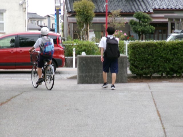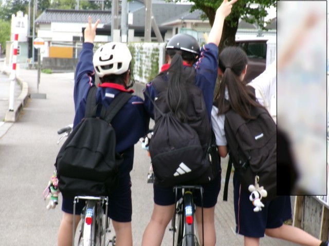 部活動が終わって、下校する様子です。元気なポーズで、「さようなら」
