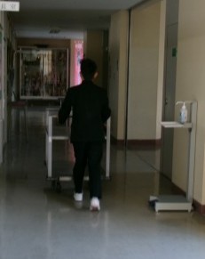 給食の準備の様子です。ワゴン車を運搬する係、給食当番が自分の役割をしっかりと行っています。配膳も手際よいです。「時間を守る」ができているので、食べる時間を確保することができます。