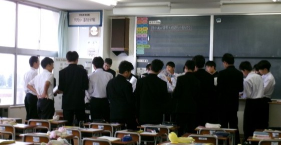 音楽の授業の様子です。男声パートが、ピアノの周りで練習していました。気持ちよさそうに歌っていました。