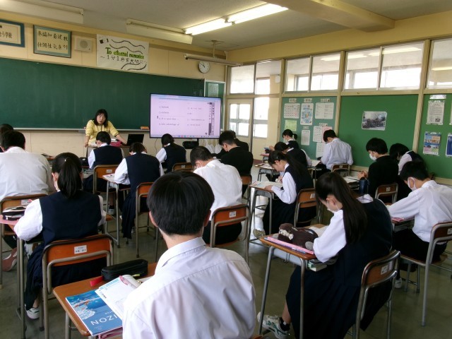 英語と社会の授業の様子です。動詞の「現在形ー過去形ー過去分詞」の変化にもいくつかのパターンがあって、念仏のように唱えていた頃が懐かしいです。頑張れ、3年生!
