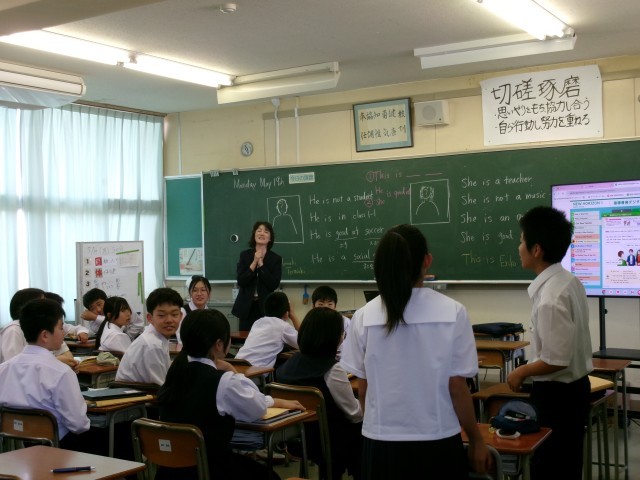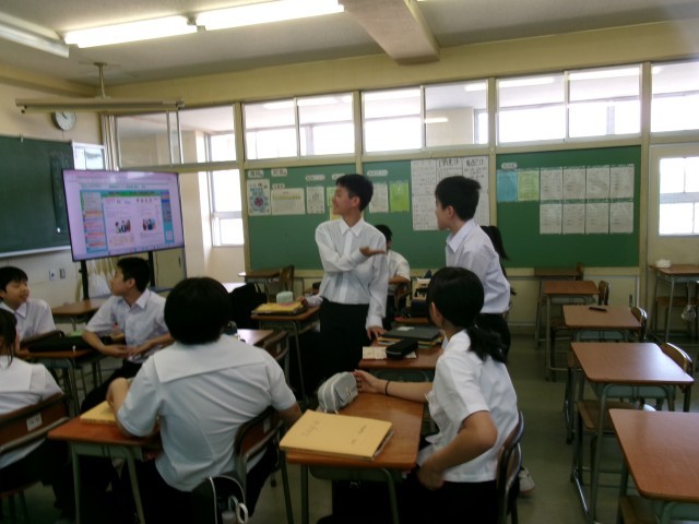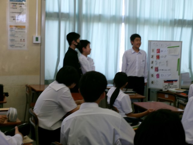 英語の授業の様子です。「be good at~ ~が得意です」を使って他己紹介をしていました。相手の得意なことをまず知ること、そして伝えることができていて発表の後に拍手がありました。楽しそうでした。