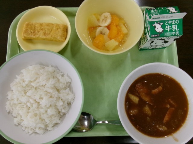 5月22日(木)今日の給食 公開日 2025/05/22 更新日 2025/05/23 今日の給食 たべキリンハヤシの日です。今日は、卵ロール オン ザ ライスでおいしくいただきました。〈今日の献立〉ごはん牛乳たべキリンハヤシ卵ロールフルーツミックス
