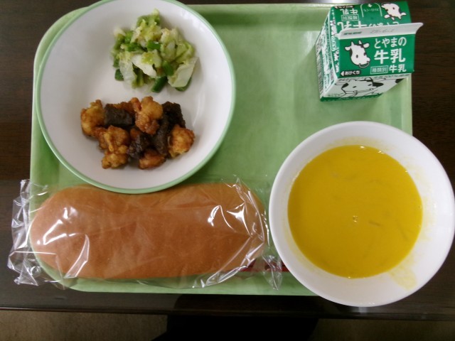 今日のサラダは、イタリアンサラダです。バルサミコ酢やオリーブオイルのドレッシングをかけるのが、イタリアンサラダだそうです。ちょっと酸味がありました。すっぱいもの好きなので、たいへんおいしくいただきました。
