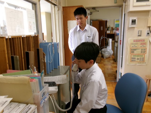 2年生は、「14歳の挑戦」事前訪問の確認の電話を事業所にかけました。分かりやすい声の大きさで緊張しながらもしっかりと話し、言われたことをメモしながら対応していました。聞いている先生の方が緊張しているようでした。事業所の皆様、対応くださりありがとうございました。事前訪問もよろしくお願いします。