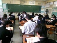 保健体育科の授業の様子です。バレーボールのパス練習をしていました。まだまだ、思うようにボールコントロールができなくて、走りまわっているグループもありました。