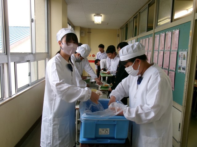 6月3日(火)給食準備 公開日 2025/06/03 更新日 2025/06/03 生徒の活動紹介 給食の配膳の様子です。給食当番さん、ありがとうございます。配膳した後に、食器の片付けがしやすいよう整えてくれていました。