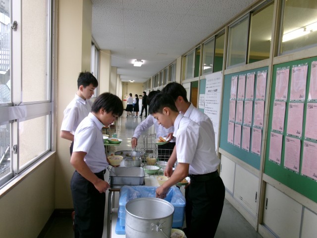 こちらは、おかわりをする生徒たちの様子です。いっぱい食べて、午後も頑張りましょう。