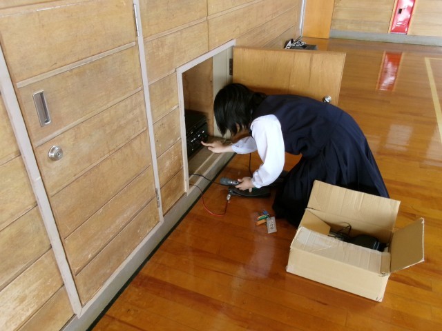 生徒会執行部と各部の部長で壮行会のリハーサルで、流れや動きの確認、マイクの準備等を行いました。本番が楽しみになりました。