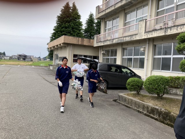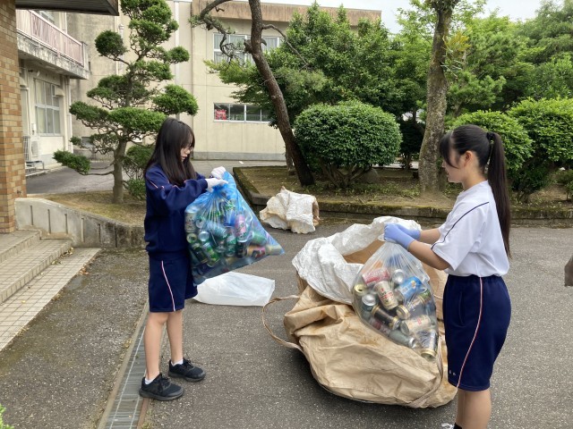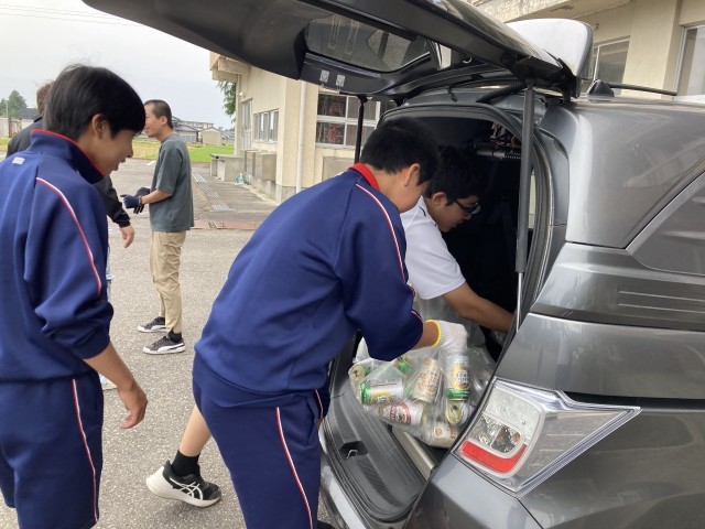 図書委員のみなさんが、アルミ缶回収の手伝いをしました。車の誘導や分別作業を行いました。たくさんのアルミ缶が集まりました。ご協力ありがとうございました。